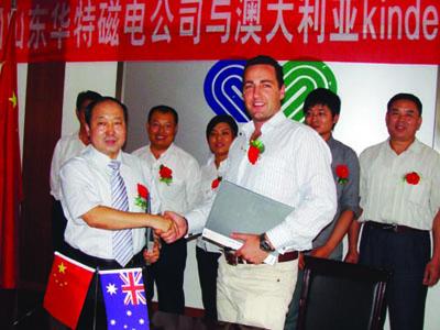 9月19日,我公司與澳大利亞kinder公司代理合作協議簽訂儀式在公司二樓會議室舉行,公司董事長兼總經理王兆連與kinder公司技術總經理查爾斯charles在協議上簽字。