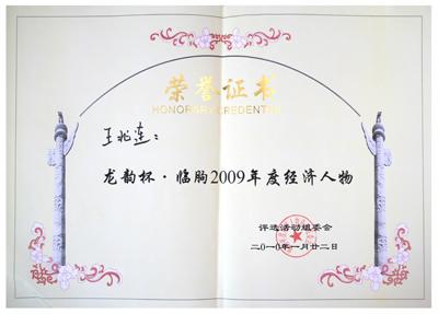 公司總經(jīng)理兼董事長王兆連榮獲龍韻臨朐2009年度經(jīng)濟(jì)人物