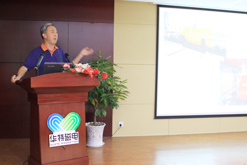 會前,與會代表首先參觀了華特公司山東省綜合院士工作站、山東省磁力應(yīng)用裝備重點實驗室、中國冶金礦山磁電工程技術(shù)中心、山東省磁電工程技術(shù)中心、省級企業(yè)技術(shù)中心和華特8萬平方米產(chǎn)品工業(yè)流水生產(chǎn)線車間。濰坊市科技局副局長董民,臨朐縣政府副縣長張新明,臨朐縣科技局局長尹秀榮到會祝賀。