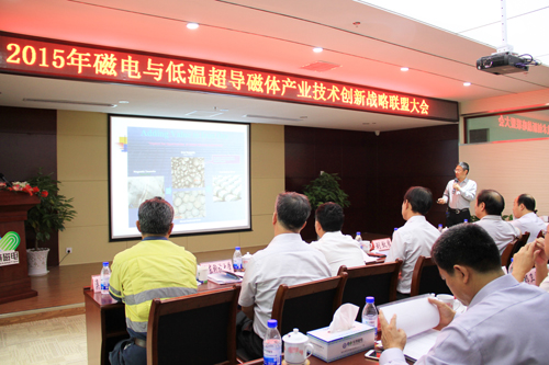 金秋送爽,丹桂飄香。9月19日,2015年中國磁電與低溫超導(dǎo)磁體應(yīng)用產(chǎn)業(yè)技術(shù)創(chuàng)新戰(zhàn)略聯(lián)盟年會在中國五鎮(zhèn)之首東鎮(zhèn)沂山腳下,山東省濰坊市臨朐縣召開。來自全國各地的聯(lián)盟成員單位代表、科研院所和行業(yè)協(xié)會的領(lǐng)導(dǎo)專家,相聚一起,共商發(fā)展大計。武漢理工大學(xué)資環(huán)學(xué)院院長、墨西哥國家科學(xué)院院士宋少先教授,中國冶金礦山機(jī)械協(xié)會秘書長劉效良,中國重型機(jī)械協(xié)會洗選設(shè)備專委會秘書長呂英凡,澳大利亞中信泰富技術(shù)總監(jiān)張長久教授級高工,東北大學(xué)土木資源工程學(xué)院副院長韓躍新教授,河北鋼鐵集團(tuán)礦業(yè)有限公司總經(jīng)理助理鄭衛(wèi)民教授級高工、礦山研究設(shè)計院院長南世卿博士,中鋼集團(tuán)馬鞍山礦山研究院有限公司副總工孫炳泉教授級高工、選礦所所長楊任新教授級高工,鞍鋼礦業(yè)集團(tuán)科技部陳占金教授、礦業(yè)設(shè)計院總設(shè)計師陳強(qiáng)教授級高工,蘇州中材非金屬工業(yè)設(shè)計院于陽輝高工,中國地質(zhì)調(diào)查局成都礦產(chǎn)綜合利用研究所研究員張裕書,中國地質(zhì)科學(xué)院鄭州礦產(chǎn)綜合利用研究所劉磊主任,中科院高能物理研究所超導(dǎo)磁體工程中心副主任趙玲高工,山東科技大學(xué)化工學(xué)院副院長呂憲俊教授,華北理工大學(xué)礦業(yè)學(xué)院原院長張錦瑞教授、選礦系主任趙禮兵博士,山東華聯(lián)礦業(yè)公司副總經(jīng)理亓中華, 山東興盛礦業(yè)集團(tuán)秦來成高工,西部超導(dǎo)材料科技有限公司梁朝暉處長,山東華建鋁業(yè)集團(tuán)有限公司蔣波部長,中冶北方設(shè)計院選礦所所長孟光棟教授級高工,建龍礦業(yè)集團(tuán)董事長苑占永,萊蕪礦業(yè)董事長亓俊峰,唐山陸凱科技有限公司董事長李松奕,威海海王旋流器有限公司董事長黃愛秀,山東理工大學(xué)孟凡濤教授,濟(jì)寧學(xué)院李光葉博士, 山東乾舜礦冶科技股份有限公司董事長馮婕,以及來自中南大學(xué)、魯南礦業(yè)、臨礦集團(tuán)、廟溝鐵礦、中關(guān)鐵礦等四十多家單位一百多名代表和山東電視臺、《中國礦業(yè)報》、《資源再生雜志》、臨朐電視臺等媒體出席聯(lián)盟大會。