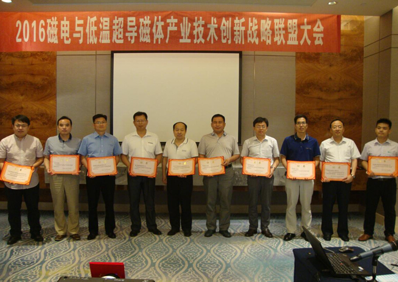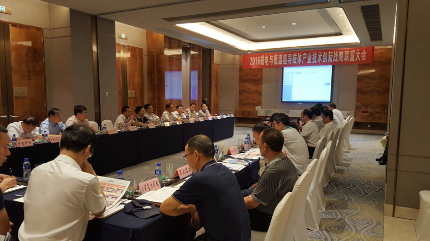 2016年6月22日,“磁電與低溫超導(dǎo)磁體應(yīng)用產(chǎn)業(yè)技術(shù)創(chuàng)新戰(zhàn)略聯(lián)盟”年會在河北唐山香格里拉大酒店隆重召開。本次年會特邀科技部政策法規(guī)司原副司長李新男、中國重機協(xié)會洗選設(shè)備專委會秘書長呂英凡、酒鋼集團選燒廠葉傳勇科長出席,以及來自聯(lián)盟單位的代表共60余人出席會議。會議由聯(lián)盟秘書長、山東華特磁電科技股份有限公司常務(wù)副總劉風(fēng)亮主持。