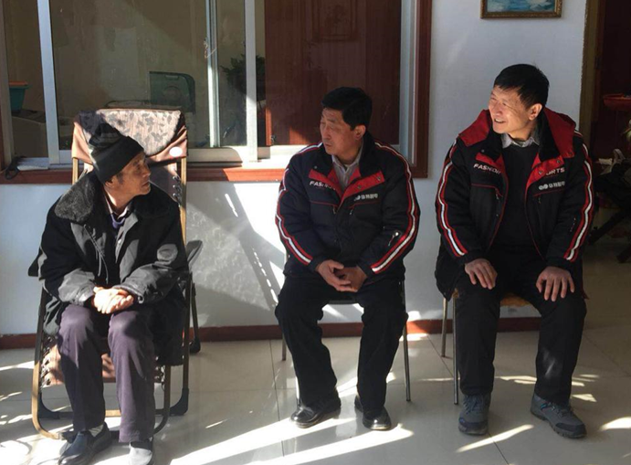 李家莊村老黨員孫福秀,因腦血栓導致行走不便,但他依然精神飽滿,向慰問組大致講述了他在部隊取得的成就,對黨政各級以及華特磁電公司對他的幫助支持表示感謝。慰問組向他簡要介紹了2017年黨和國家的重大事項,同時祝愿他2018年新年快樂,身體健康,一切順利。