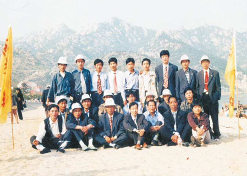 1999年,公司雖小,也要講究企業文化,全體員工青島海水浴場合影。