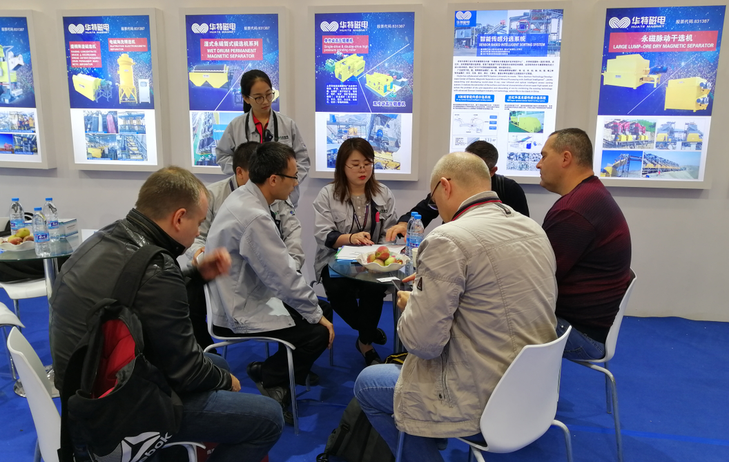會議現場,公司攜全新一代油水復合冷卻立環高梯度磁選機亮相,該設備技術成熟,運行穩定,智能化,分選效果好,易維護等五大核心競爭力,更大滿足客戶需求,自投入市場以來,深受國內外客戶的好評。華特憑借創新技術成為此次展會的亮點之一。