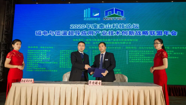 11月21日,2020年度第25期泰山科技論壇暨磁電與低溫超導(dǎo)應(yīng)用產(chǎn)業(yè)技術(shù)創(chuàng)新戰(zhàn)略聯(lián)盟十周年年會(huì),在山東臨朐金成大酒店勝利召開。此次論壇和聯(lián)盟大會(huì)舉辦,旨在促進(jìn)各聯(lián)盟成員產(chǎn)學(xué)研用合作和國(guó)內(nèi)外磁電新技術(shù)、新裝備、新工藝等進(jìn)行學(xué)術(shù)交流,推動(dòng)和加快我省制造業(yè)實(shí)現(xiàn)新舊動(dòng)能轉(zhuǎn)換和產(chǎn)業(yè)轉(zhuǎn)型升級(jí),對(duì)我國(guó)科學(xué)技術(shù)和經(jīng)濟(jì)社會(huì)發(fā)展提供決策和智力支持。