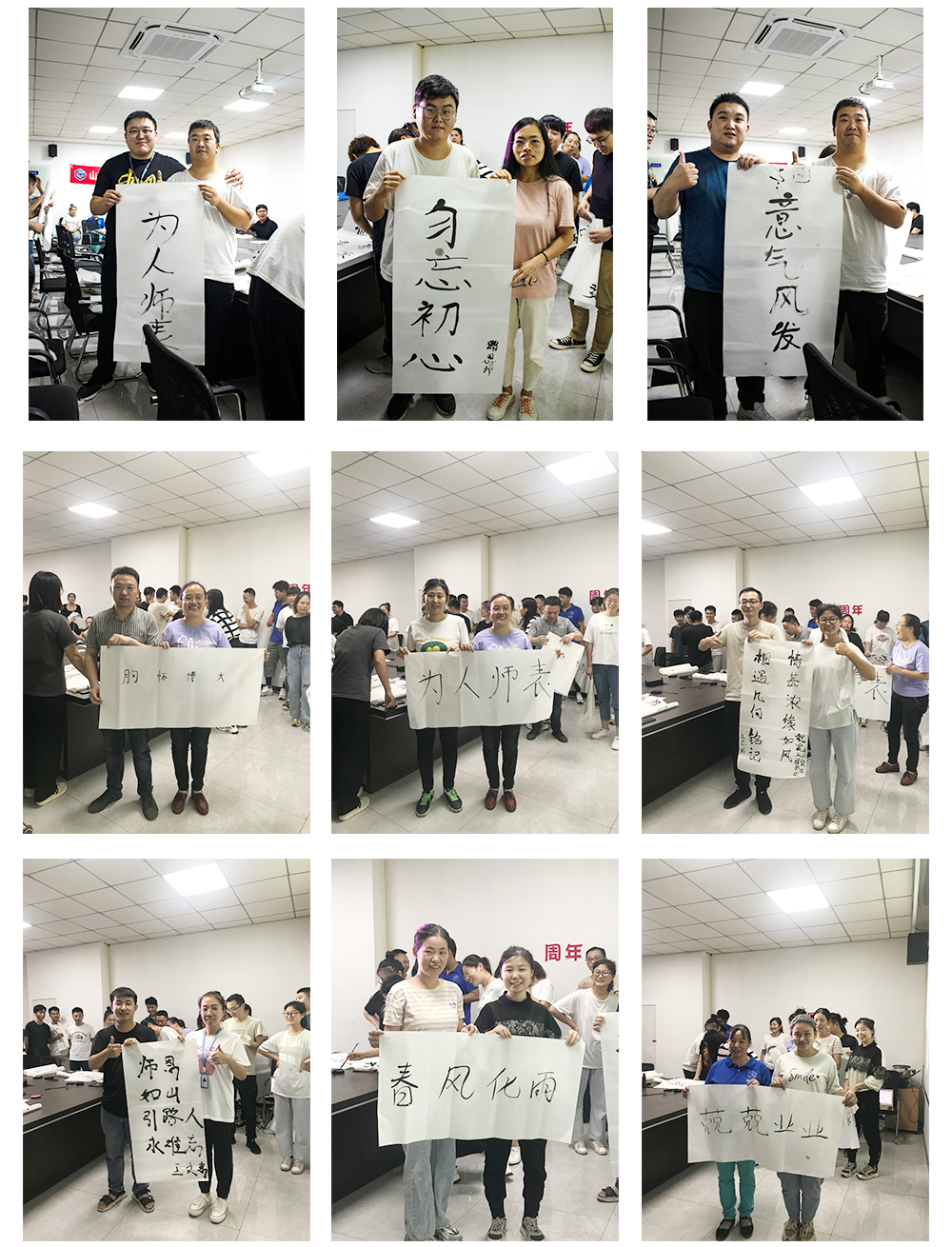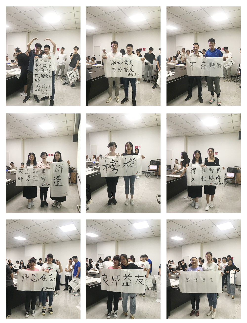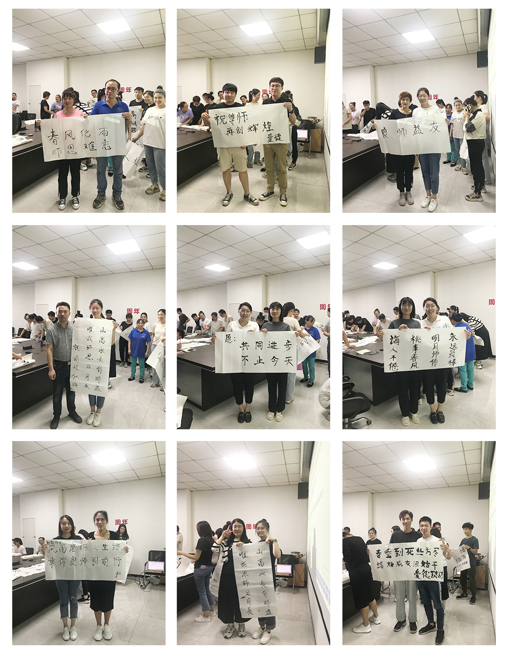 第二個(gè)環(huán)節(jié)是徒弟為師寫(xiě)一幅字,表達(dá)對(duì)師的感恩與敬意。此期間師與徒弟共同完成書(shū)法,徒弟將書(shū)法雙手獻(xiàn)給自己的師,并與師合影留念。濃濃的師徒情誼感染了在場(chǎng)的每一個(gè)人。相信在以后的工作中也定會(huì)師徒齊心,完成前方的困難與挑戰(zhàn)。