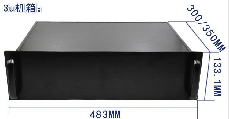 3U全鋁/鈑金機箱有300mm深與350mm深兩個型號尺寸分別為133.1x483x300/350MM,價格分別為345元和396元
